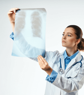 Exames de imagem para diagnóstico de ossos e órgãos.